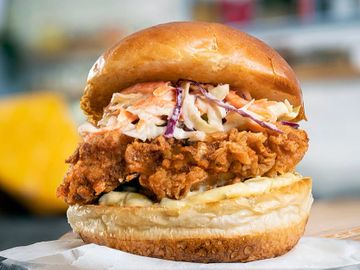tavuk köfte, cips, domates, turşu, marul